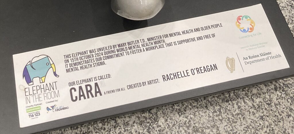 Elephant in the room ehk elevant toas on sümbol, mille skulptuur oli nii Iirimaa PwC kontoris kui Iiri ministeeriumis. See demonstreerib pühendumust töökeskkonna hoidmiseks, mis on toetav ja vaba vaimse tervise stigmast.